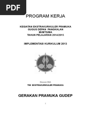 Pengembangan dan evaluasi dari Program Kerja periode yang lalu. Save Save PROGRAM KERJA PRAMUKApdf For Later. Contoh Program Kerja Pramuka Sdn Mlilir 2 2015-2016.