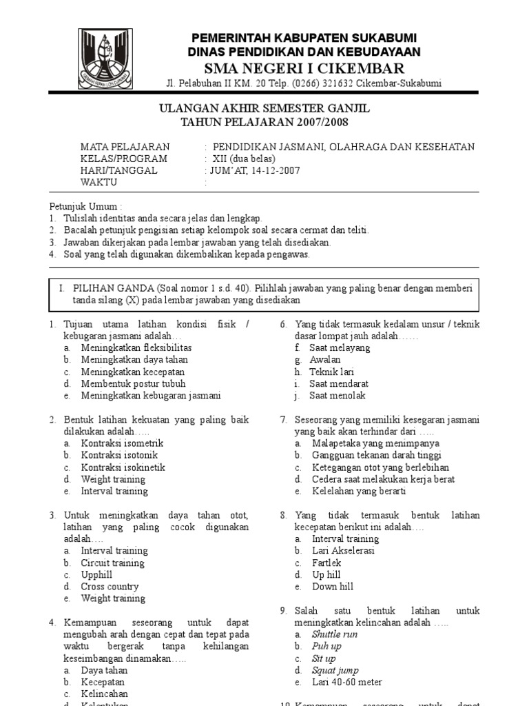 Soal Jawab Penjaskes Sma Ii Soalujian Net