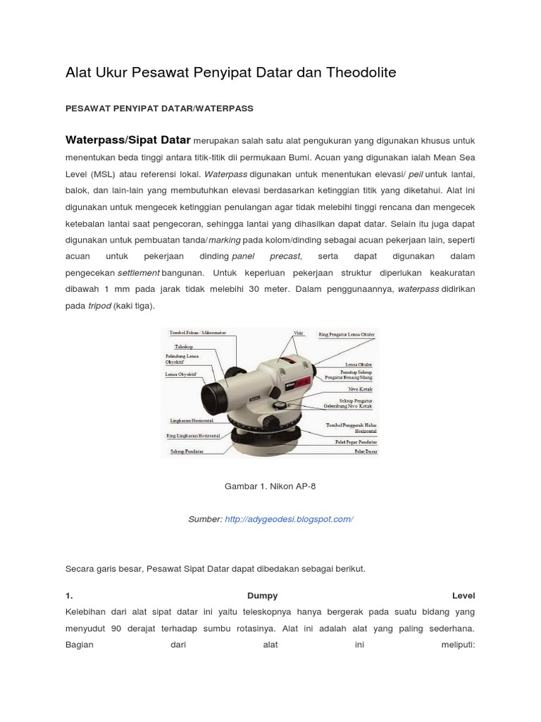 Alat Ukur Pesawat Penyipat Datar Dan Theodolite