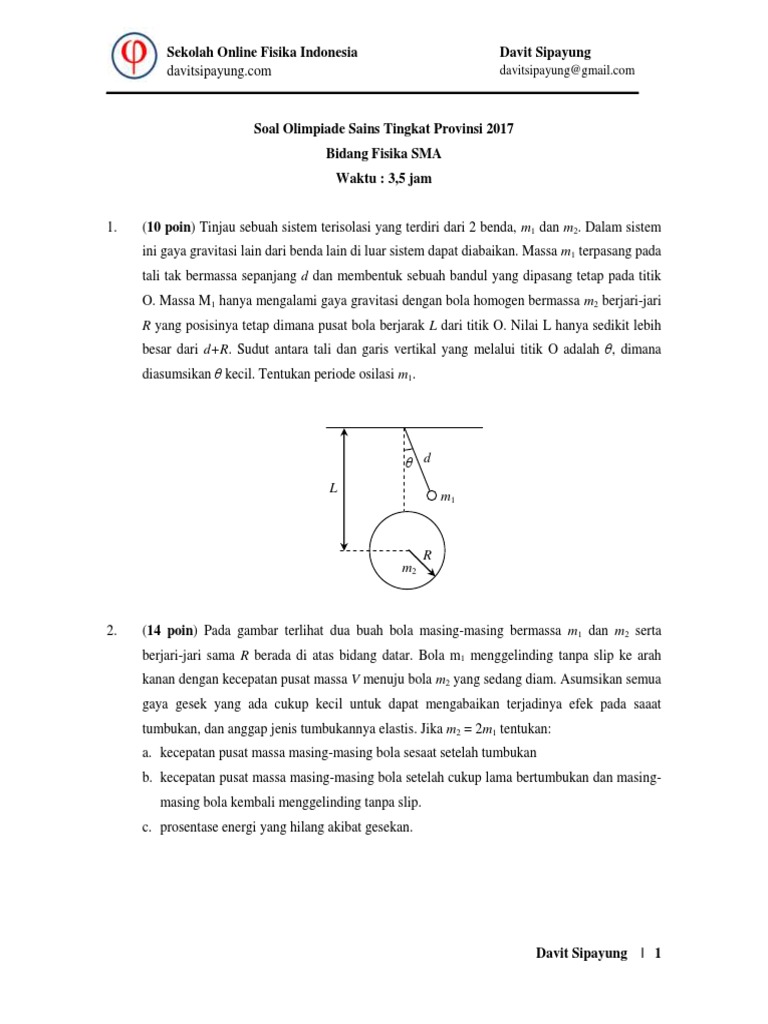 Soal Dan Pembahasan Olimpiade Fisika Sma Tingkat Provinsi 2017 Oleh Davit Sipayung