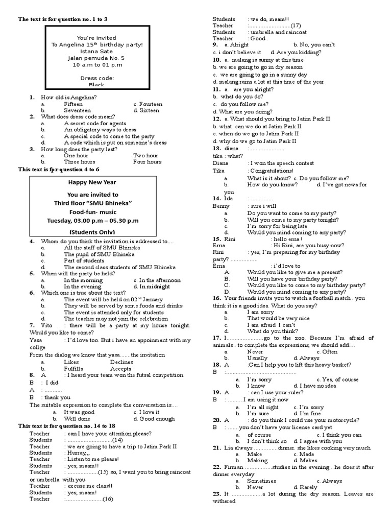 Penilaian Tengah Semester PTS merupakan istilah baru untuk Ulangan Tengah Semester UTS yang merupakan implikasi dari Revisi Kurikulum 2013. He is twenty six years old and he is single. Contoh file soal ukk bahasa inggris kelas 7 semester 2 kurikulum 2013 berikut ini adalah kumpulan dari berbagi sumber tentang contoh kisi kisi soal bahasa inggris smp kelas 7 kurikulum 2013 yang bisa gunakan untuk wallpaper dan diunduh secara gratis.