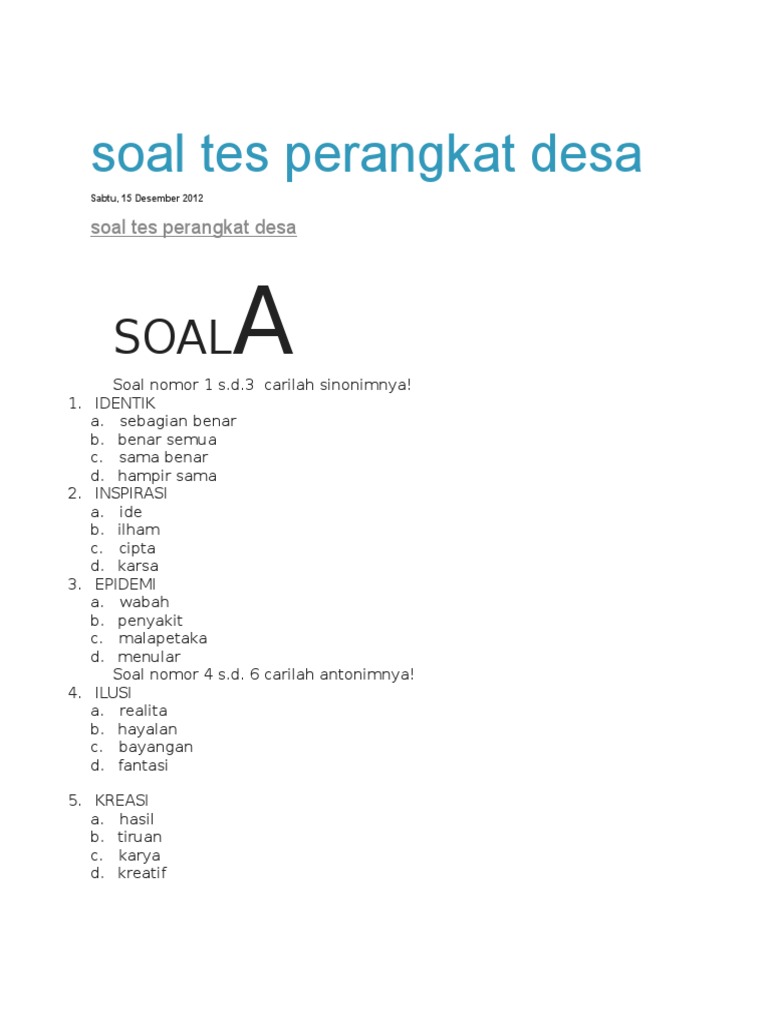 Contoh Soal Tes Tertulis Calon Kepala Desa Dapatkan Contoh