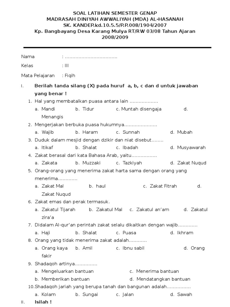 Contoh Soal Fiqih Kelas 4 Semester 2 Dan Kunci Jawaban Revisi Download File Guru