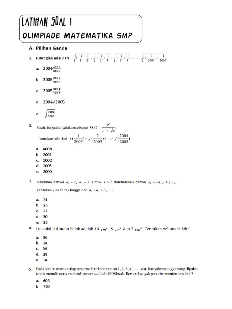 Kumpulan Soal Olimpiade Matematika Sd Kelas 5 Dan 6