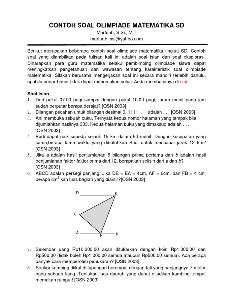Latihan soal osn matematika sd 2021 scribd. Soal Olimpiade MTK SD. Soal-soal ini bisa kalian jadikan referensi untuk belajar OSN terutama untuk kalian yang bakalan mengikut OSN 20202021 ini bisa bermanfaat banget. OSN SD merupakan slah satu ajang bergengsi.