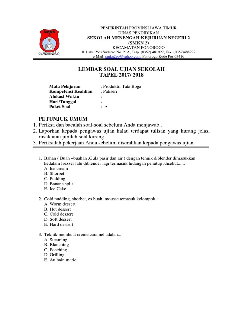 Contoh Soal Dan Contoh Pidato Lengkap Soal Unbk Jasa Boga 2018