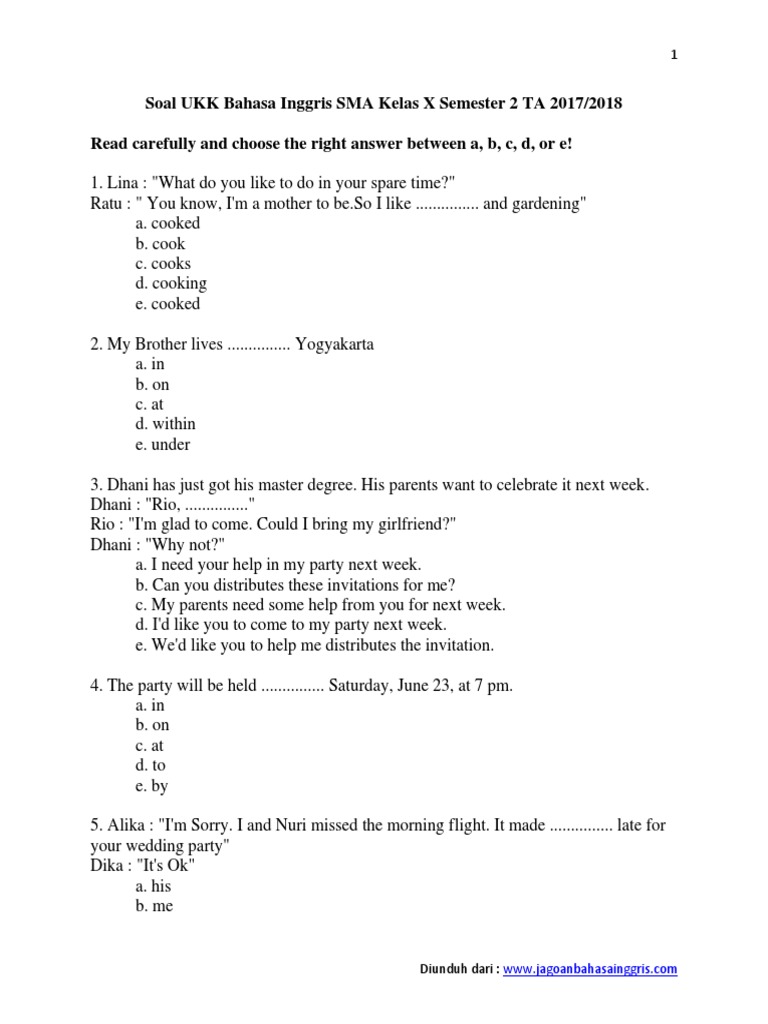 Demikian Latihan Soal Online UAS UKK Bahasa Inggris Kelas 3 Tiga SD Semester 2. 20 Soal Bahasa Inggris Kelas 7 SMP Semester 2 Cara setiap siswa mempelajari Bahasa Inggris tentulah berbeda. Jika ingin mendownload soal berikut ini linknya Soal UKK UAS Bahasa Inggris Kelas 1 Semester 2 Terbaru Tahun 2018 Kunci Jawaban Room I 1.