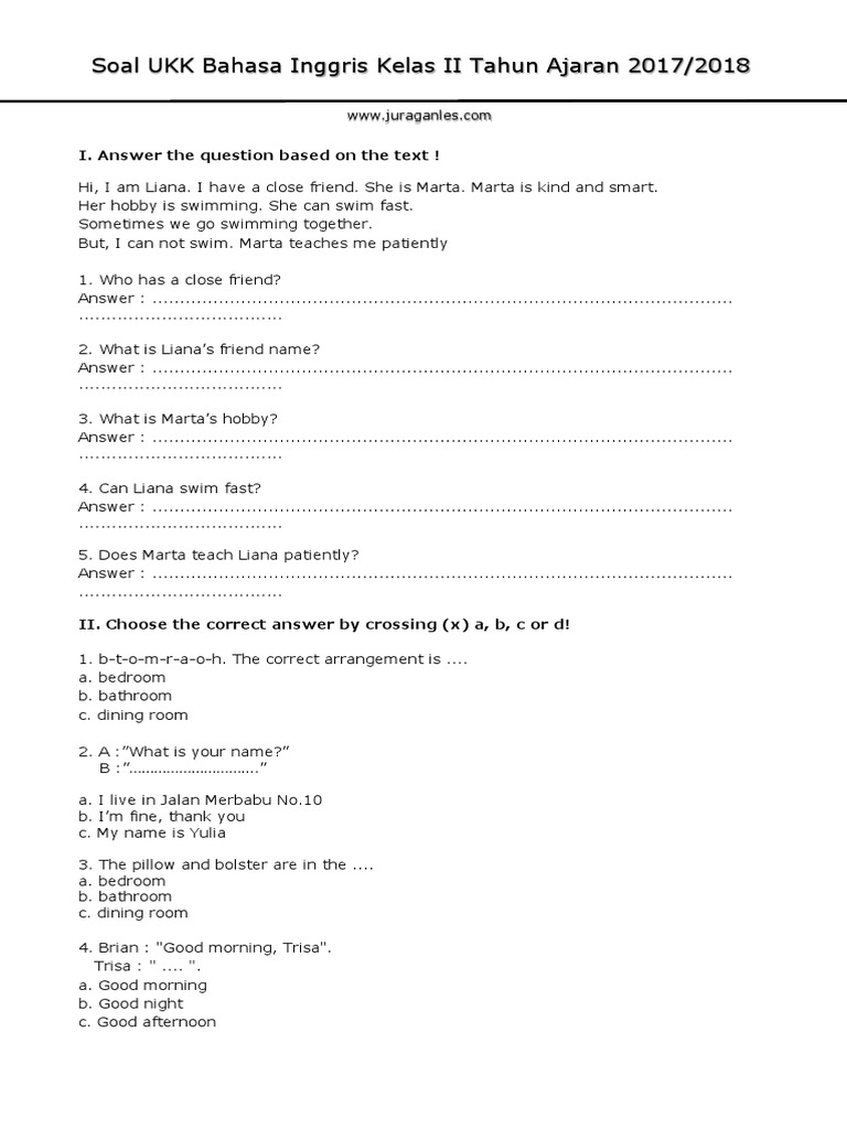 Soal Ukk Bahasa Inggris Kelas 2 Sd Plus Jawabannya
